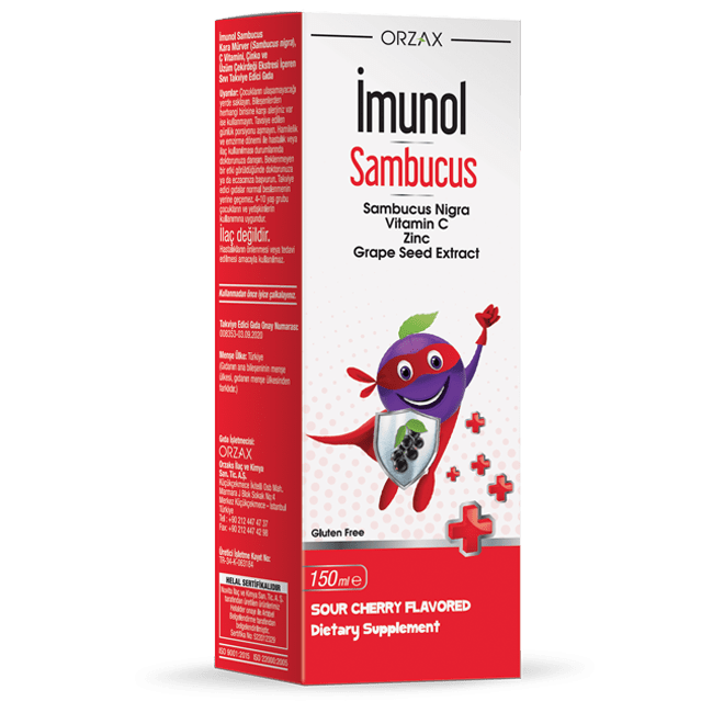 İmunol Sambucus syrup is specially designed for children and contains sambucus nigra — black elderberry, vitamin C, grape seed extract and zinc. The content of vitamin C helps reduce tiredness and fatigue and normal functioning of the immune system. The content of zinc helps the immune system to function properly. Its cherry flavor is liked by children.