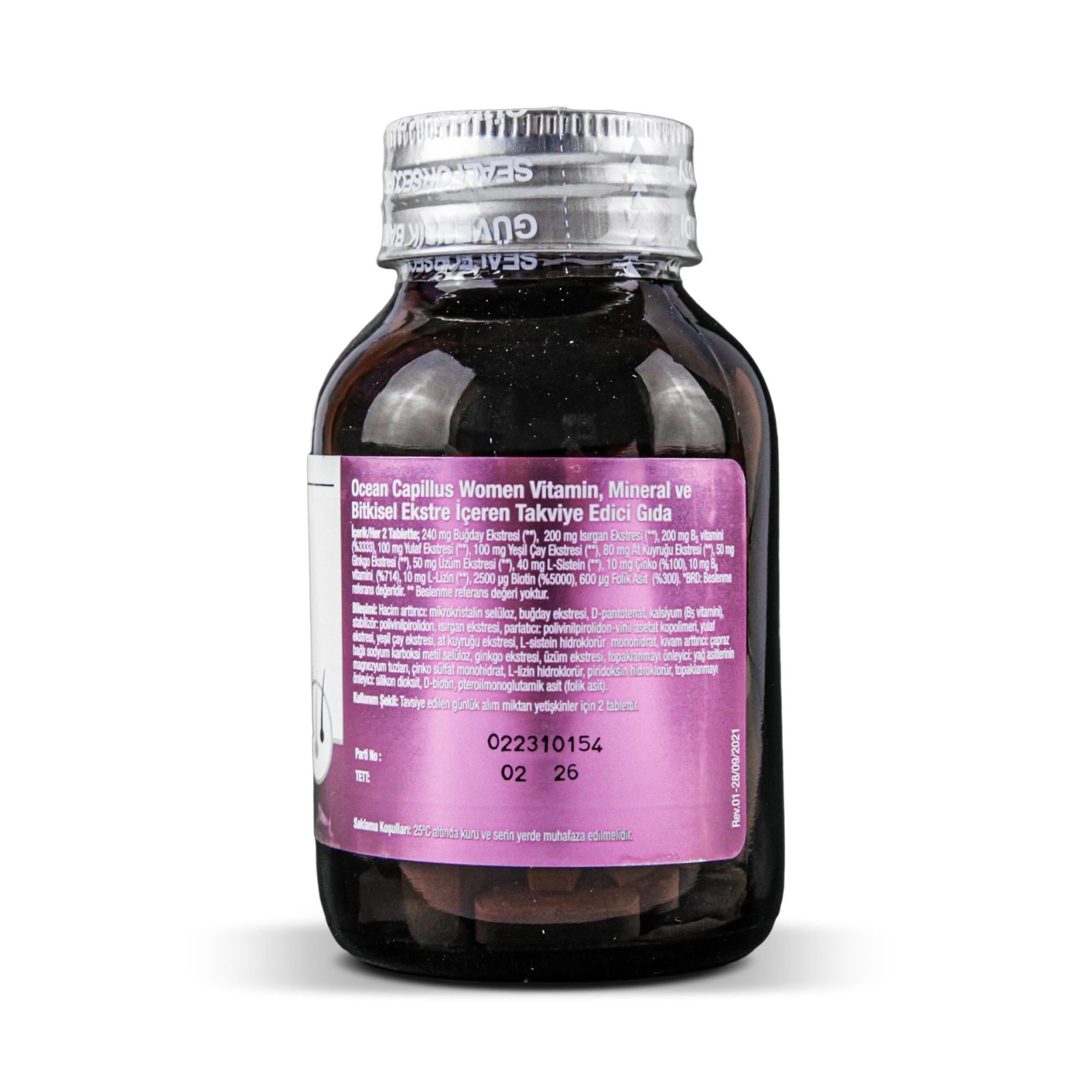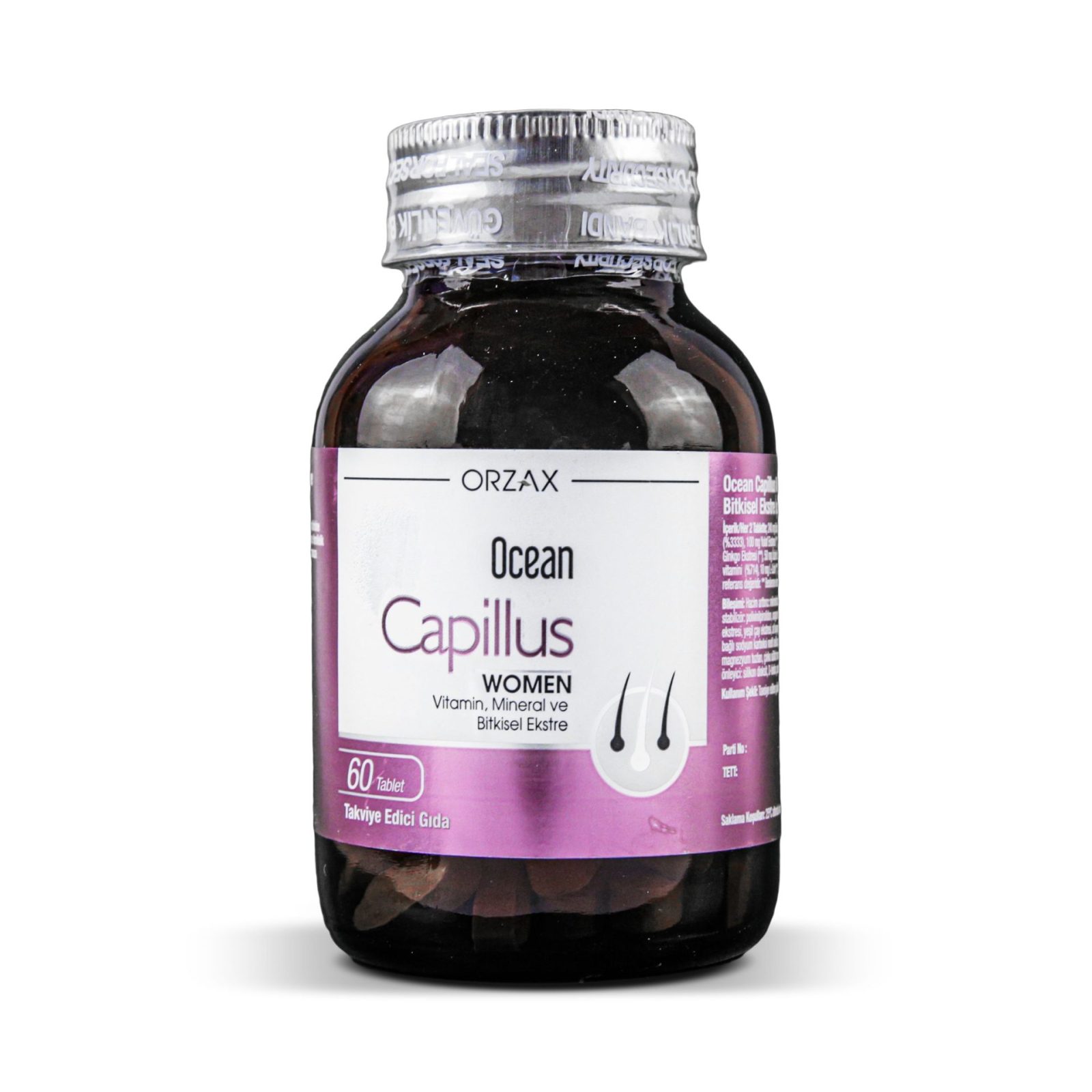 OCEAN CAPILLUS WOMEN vitamin and mineral complex with 7 plant extracts ( wheat, nettle, oats, green tea, horsetail, ginkgo biloba, grapes ), specially developed for the health of women’s hair. Plant extracts and vitamins B5, B6, folic acid, biotin, zinc, L-lysine and L-cysteine reliably and effectively prevent hair loss and turn damaged hair into lively and shiny.