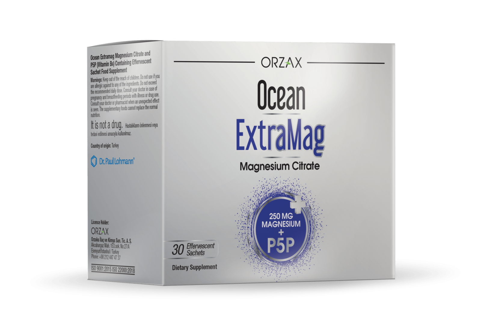 Ocean ExtraMag P5P содержит 250 мг цитрата магния и 10 мг витамина B6 (P5P)