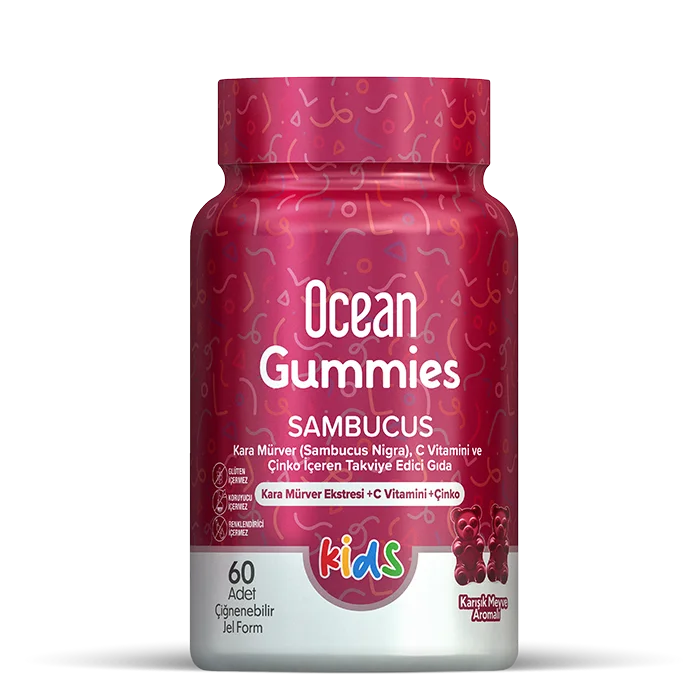 Ocean Gummies Sambucus Kids укрепляет иммунную систему ребёнка благодаря экстракту Sambucus Nigra, витамину С и цинку.