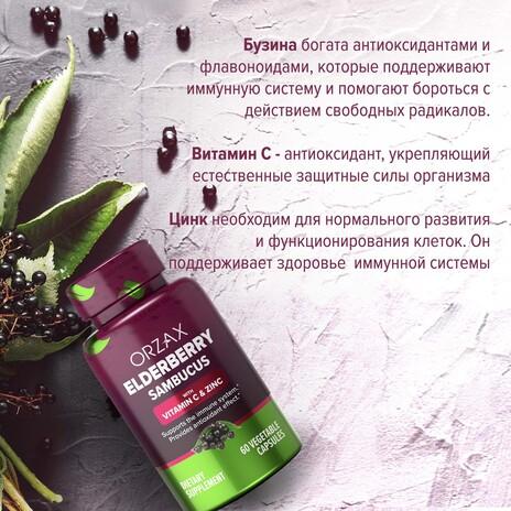 Комплекс «Экстракт Бузины» от ORZAX используется для повышения иммунитета и сопротивляемости простудным заболеваниям. Цинк и витамин С в его составе усиливают действие всех компонентов и оказывают выраженный положительный эффект на работу иммунной системы.