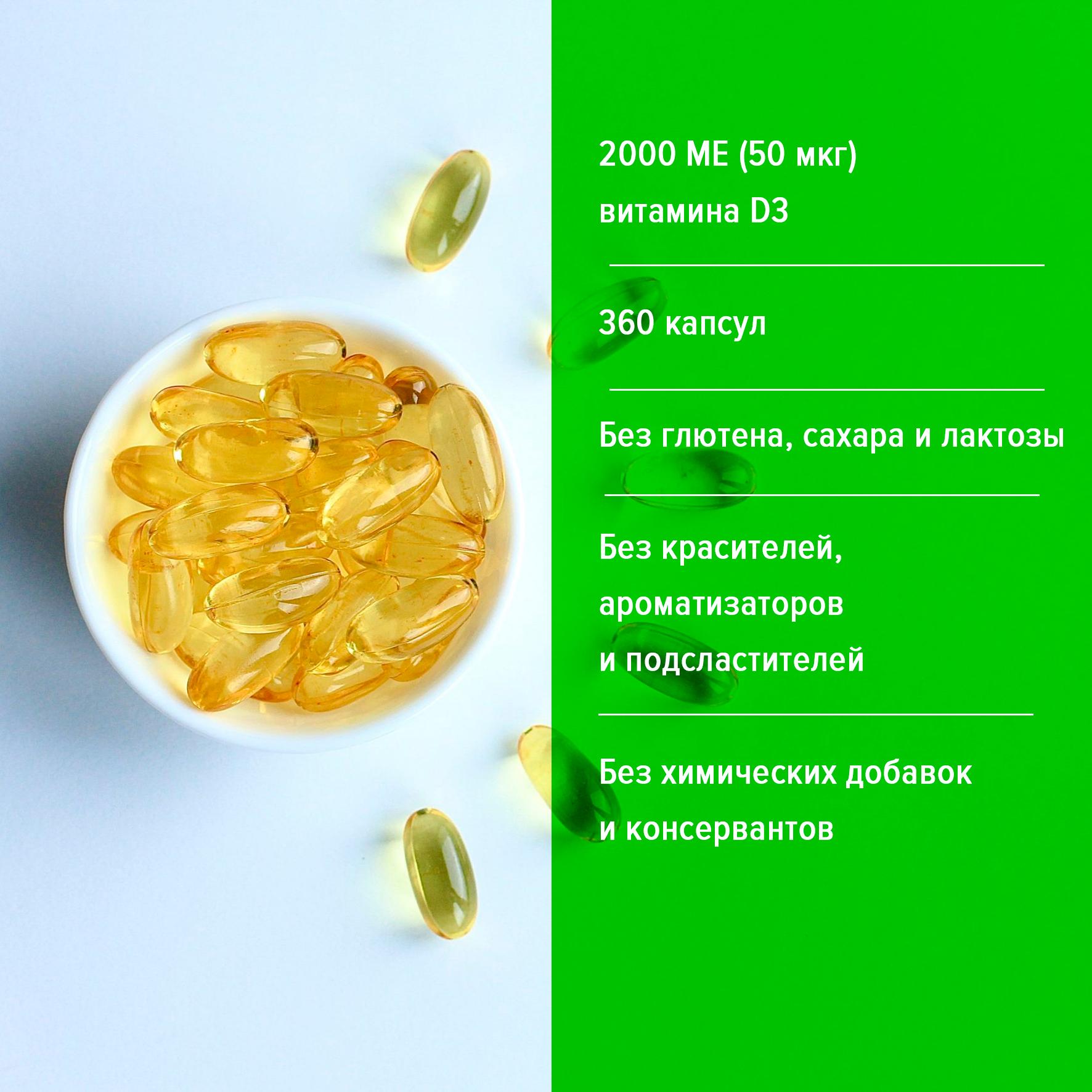 Дозировка в 1 капсуле: Витамин D3 — 50 мкг (2000 МЕ)