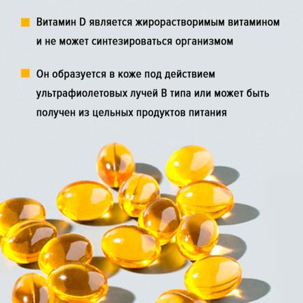 Витамин D является одним из базовых витаминов, его необходимость подтверждается многочисленными клиническими исследованиями. Обеспечивает поддержку иммунитета, способствует полноценной работе сердечно-сосудистой системы, регулирует фосфорно-кальциевый обмен, укрепляет кости и зубы, повышает настроение и уровень энергии.
